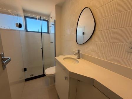 A suíte conta com armários planejados e ar condicionado split. Cozinha com armários cooktop. Aquecimento dos chuveiros a gás.
